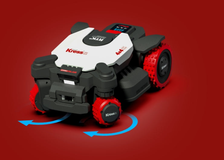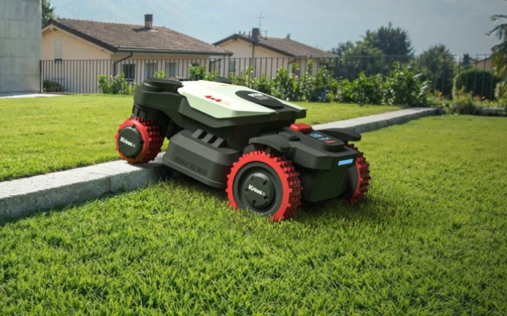 The Kress with all-wheel drive effortlessly climbs slopes of up to 80%/39 degrees and ensures precise mowing even on the steepest terrain.
