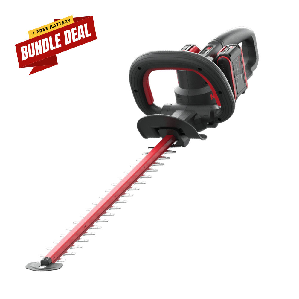 The Kress KG285 40V/61CM Hedge Trimmer Kit includes 2x 2Ah Batteries & 1x 4Ah Dual Charger and offers exceptional power and a lightweight design for ease of use.